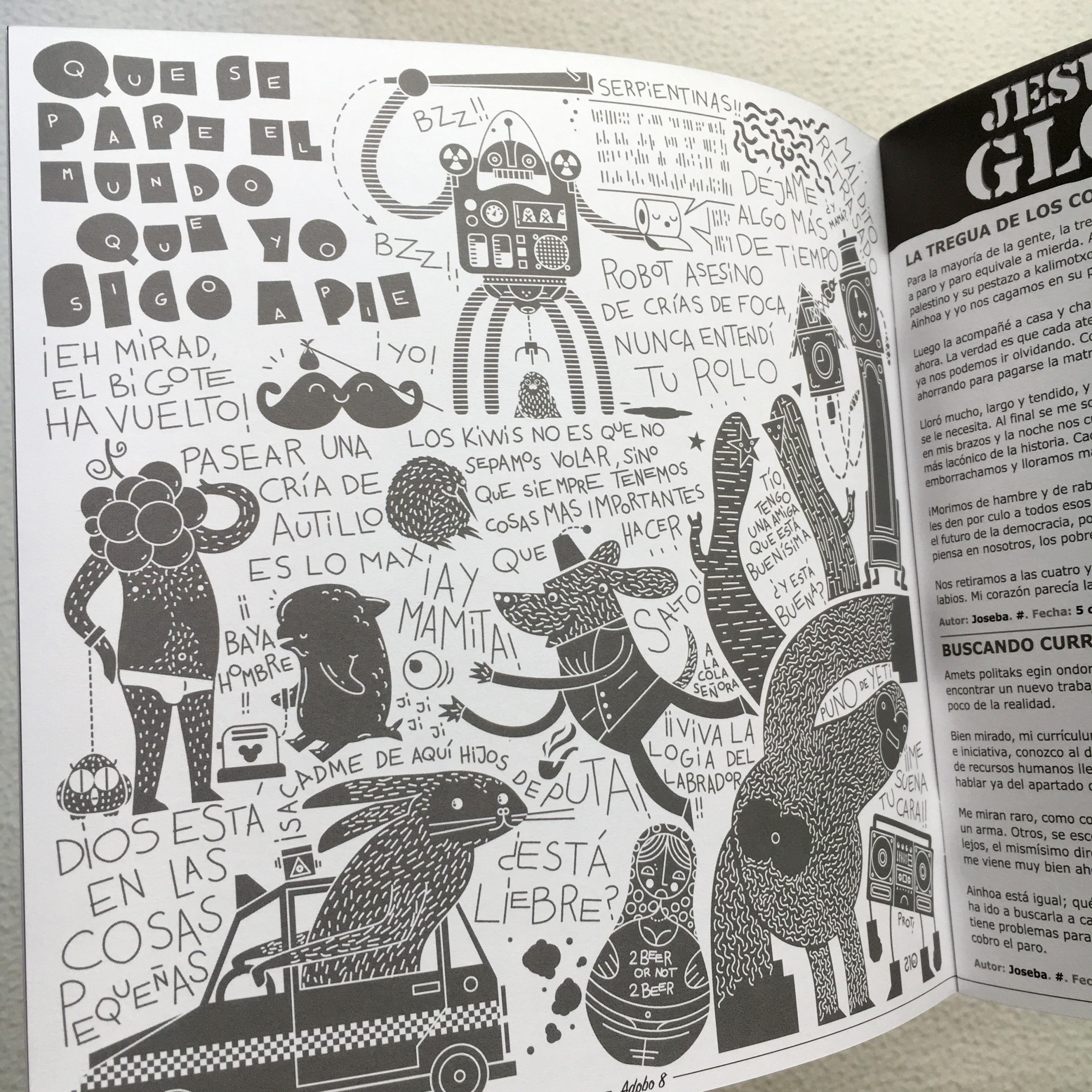 Estamos aquí reunidos ante Dios, uno y trino, para celebrar la salida de la mejor puta mierda que ha parido madre. El sexto número de Adobo llega para propinaros leñazos de humor a mano abierta que os enviarán derechos a la UCI de la risa. Impreso en papel 100% reciclado a partir de pañales usados por seropositivos, Adobo 6 os contagiará con su simpático humor y probablemente con una nutrida colección de incurables y mortales enfermedades.