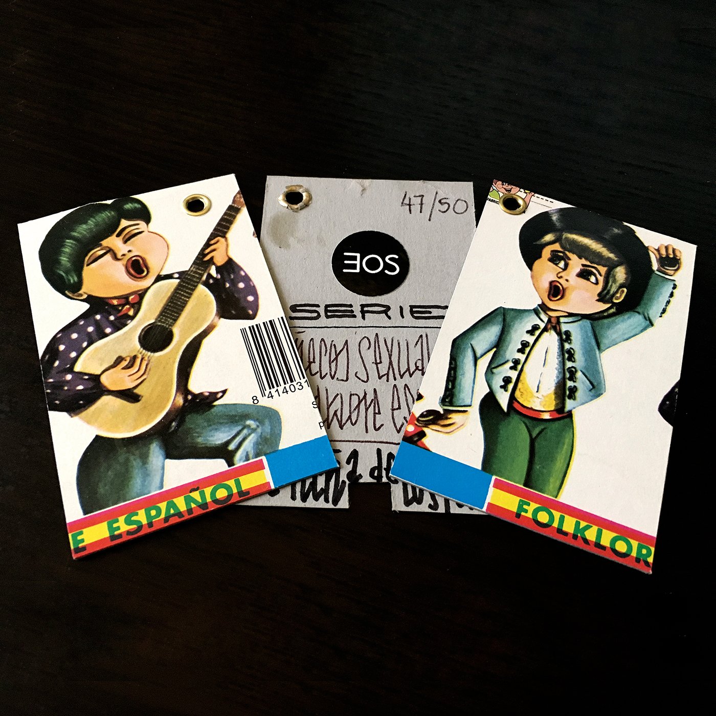 No hay tallas más pequeñas. No hay camisetas de mujer. No hay modelos que recen «Cabronazo» o «Hijaputa» ¿Y por qué? Porque esta oferta es sólo para grandes hijoputas. Las tres restantes están numeradas y personalizadas con la serie Muñecos sexuales del folklore español.